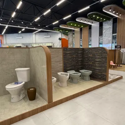 Funcionalidade e estilo para banheiros e cozinhas. Vasos sanitários, torneiras e válvulas modernas para um acabamento elegante.